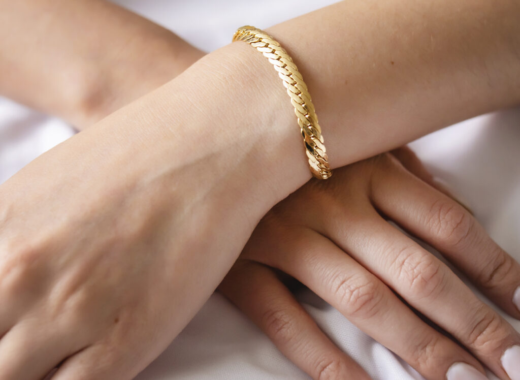 Las pulseras finas aportan movimiento y detalle a las manos sin saturar el look.